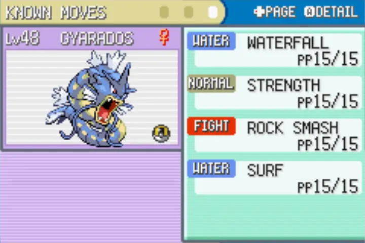Missing: Fly, Flash, and Waterfall - but offers Cut coverage that Gyarados lacks!