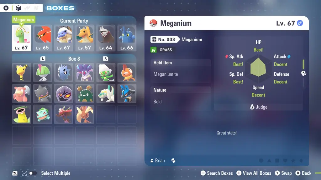 To check your Pokémon's IVs in Legends Z-A, you first need to unlock the Judge function. This is done by completing the main story and then going into your boxes will.